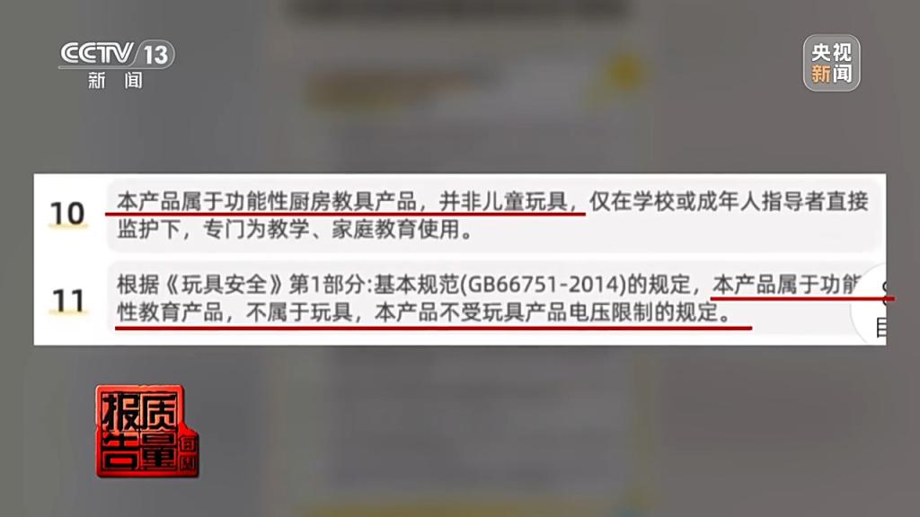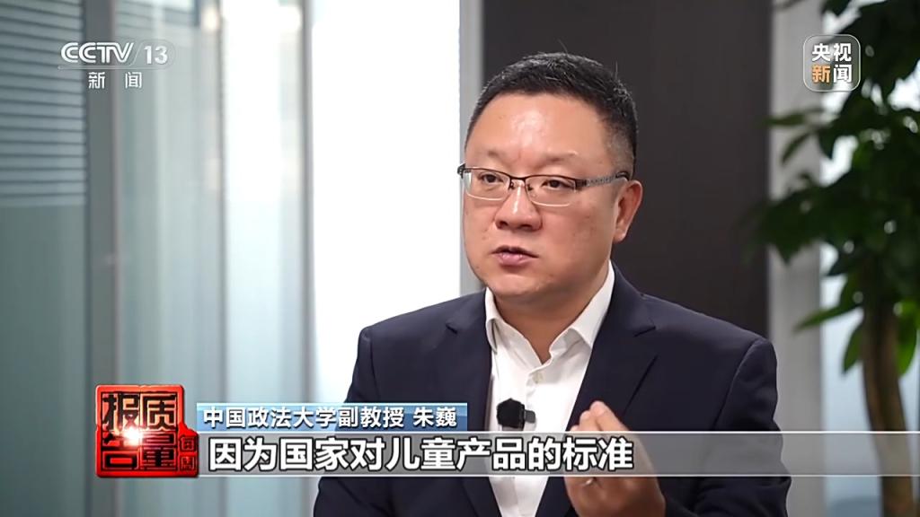 中国政法大学副教授 朱巍:因为国家的对儿童产品的标准是强制性标准,所以不符合强制性标准,不管你有什么样的一个抗辩事由,对外去公示,都达不到抗辩的效果。