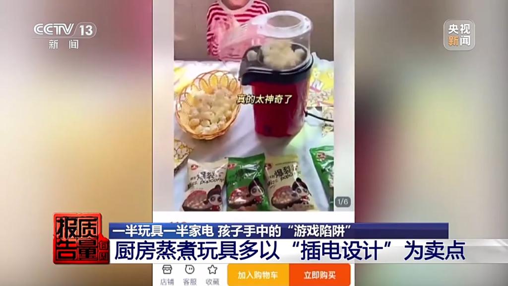 记者从上海市场监管部门了解到,除了儿童玩具家用电器化,目前市场上还存在着一些家用电器玩具化的现象,一些“网红电器”如迷你爆米花机、棉花糖机等,特意使用鲜艳的颜色、类似玩具的造型,来吸引儿童的注意,也存在着一定的风险隐患。